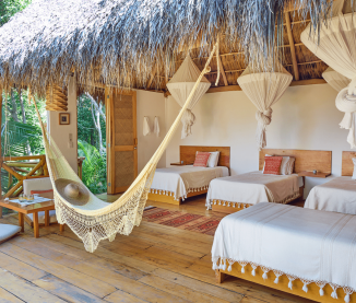 After landing, you’ll take a short taxi ride (arranged by Xinalani) to Puerto Mágico Marina, where you’ll board a boat to the retreat. The scenic ride takes about 45 minutes and brings you directly to Xinalani’s secluded beach.