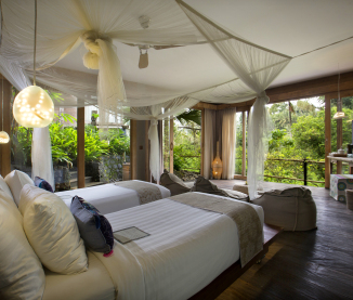 All rooms are equipped with air-conditioning, mosquito nets, and windows that can be opened to soak in the Balinese breeze.